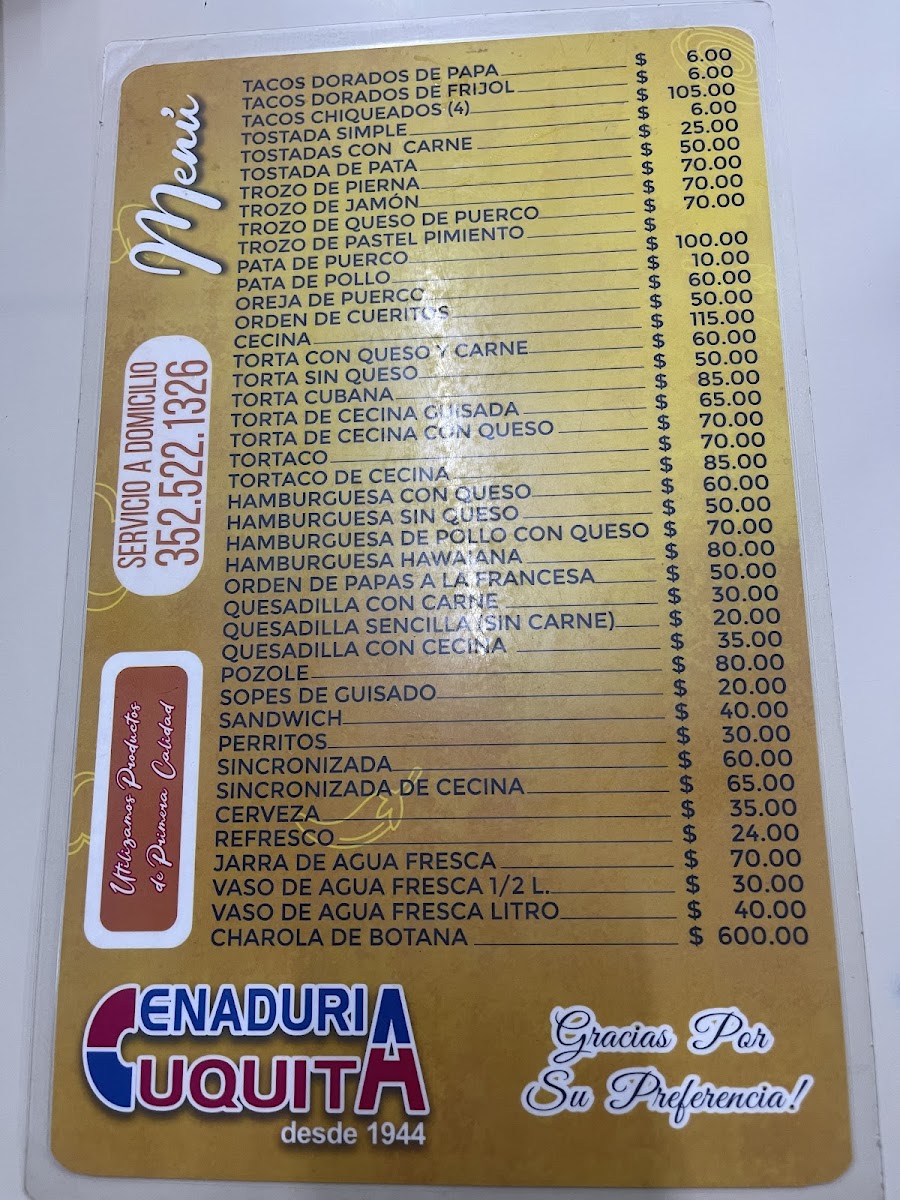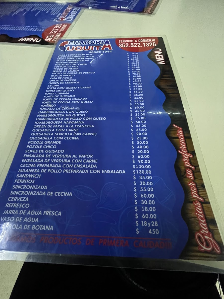 Discover the Delicious Menu at Cenaduria Cuquita Restaurant
